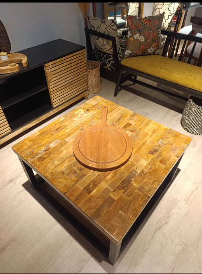 The Axis Coffee Table is a true celebration of craftsmanship and contemporary design. Handcrafted from sustainably sourced mango wood, its square tabletop features a striking geometric inlay pattern that brings warmth, rhythm, and texture to any living space. Each grain and pattern is carefully arranged to create a unique visual story — no two pieces are ever the same.