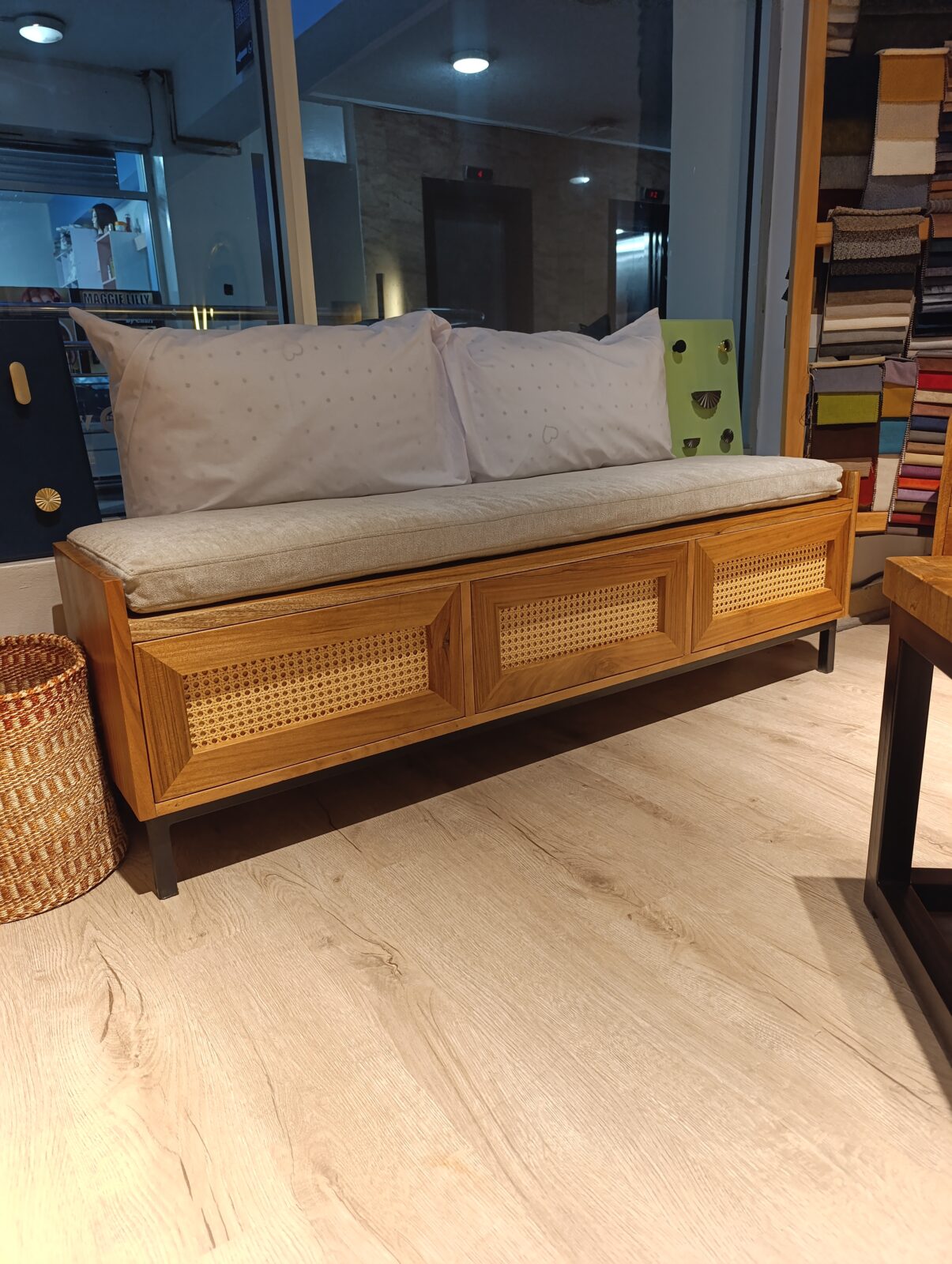 The Habari Bench is thoughtfully designed to bring order and warmth to your home. The combination of textured cane fronts, smooth wood grain, and a plush upholstered seat makes it as pleasing to the eye as it is practical. Whether placed at the foot of a bed, under a window, or in your entryway, it effortlessly elevates the room’s character.