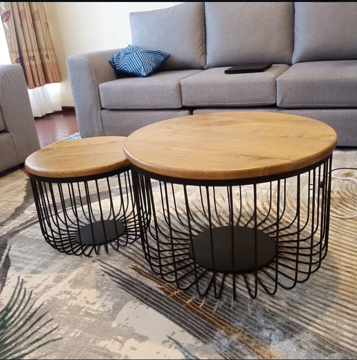 These tables are as functional as they are stylish — use them together as a layered centerpiece or separately as side tables to enhance flexibility and visual interest. The round silhouette softens their modern form, while the contrast between natural wood and matte black metal adds a refined, contemporary edge.