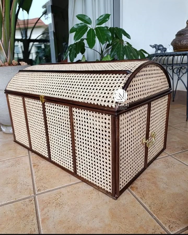 Practical yet refined, this chest is designed to complement modern and classic interiors alike. Use it to store blankets and pillows in the living room, as a chic toy chest in a child’s bedroom, or as a versatile accent piece in any corner of the home. Its subtle brass details and natural textures make it as much a statement of style as a solution for storage.