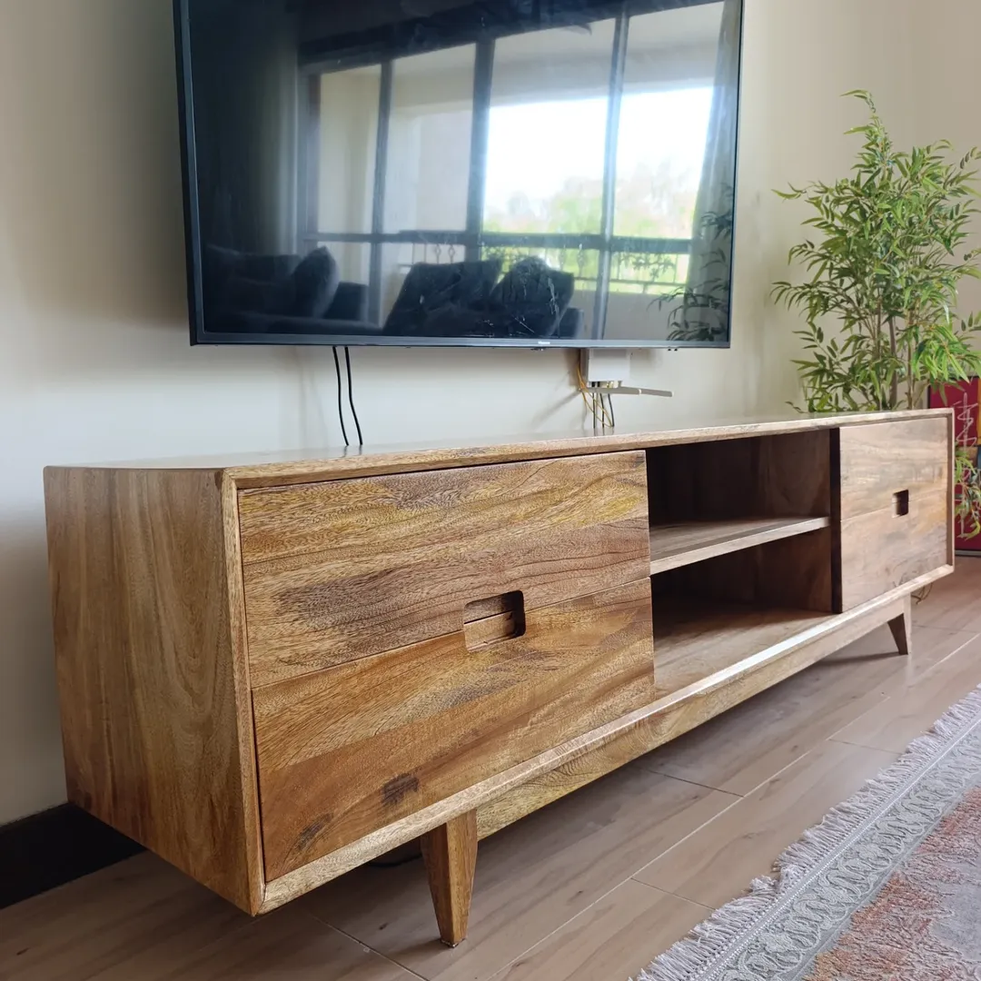 Rooted in the timeless beauty of wood and the purity of simple craftsmanship, the Asili TV Stand is a celebration of natural elegance and intentional design. Each piece tells its own story — from the unique wood grain patterns to the smooth, handcrafted joinery that reflects a deep respect for material and form.