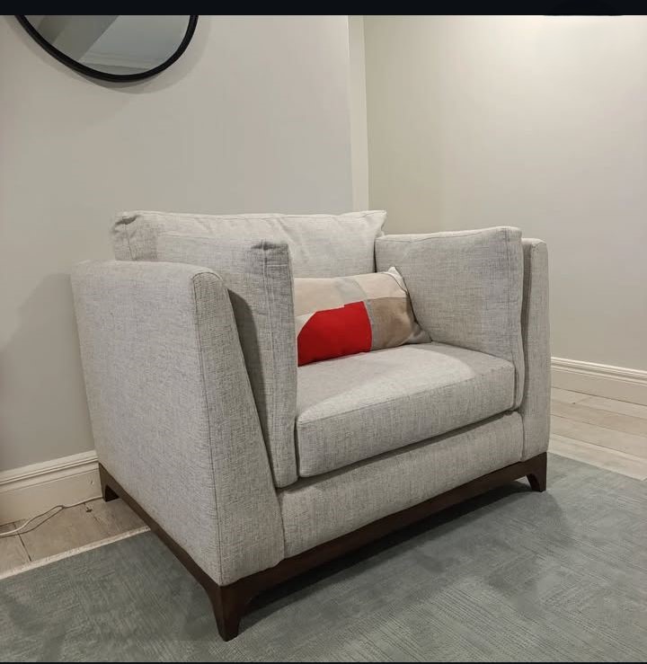 The Oslo Armchair redefines modern comfort with its bold proportions, sleek lines, and inviting presence. Designed to be both stylish and indulgently comfortable, it offers the perfect retreat for moments of quiet relaxation or reading. Its light grey premium fabric upholstery is soft to the touch yet durable, blending timeless design with everyday practicality.