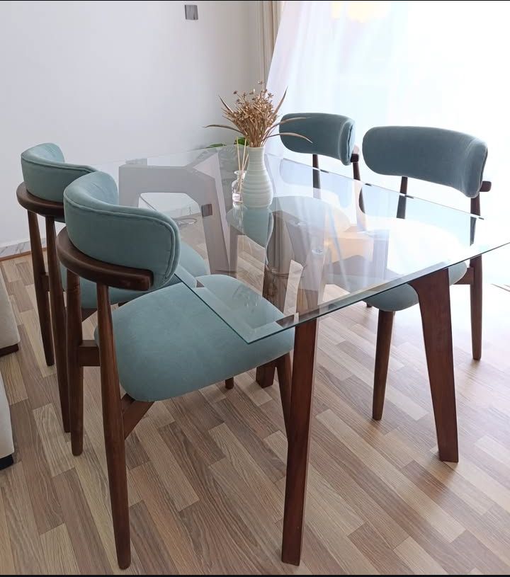 Perfect for modern apartments or family dining spaces, this six-seater set balances transparent design with rich textures — offering a dining experience that feels as stylish as it is comfortable.