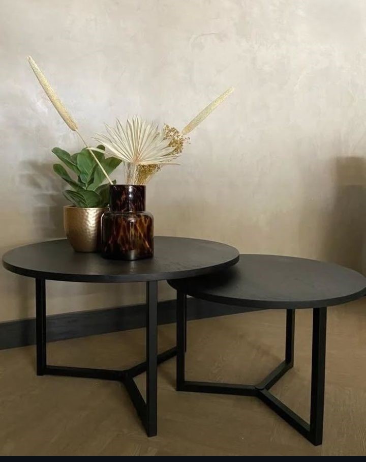 The Noir Nesting Coffee Tables embody refined modernity and functional design. Defined by their bold all-black aesthetic, these tables feature sleek circular tops resting on sturdy, geometric steel frames — a striking combination of strength, balance, and elegance.