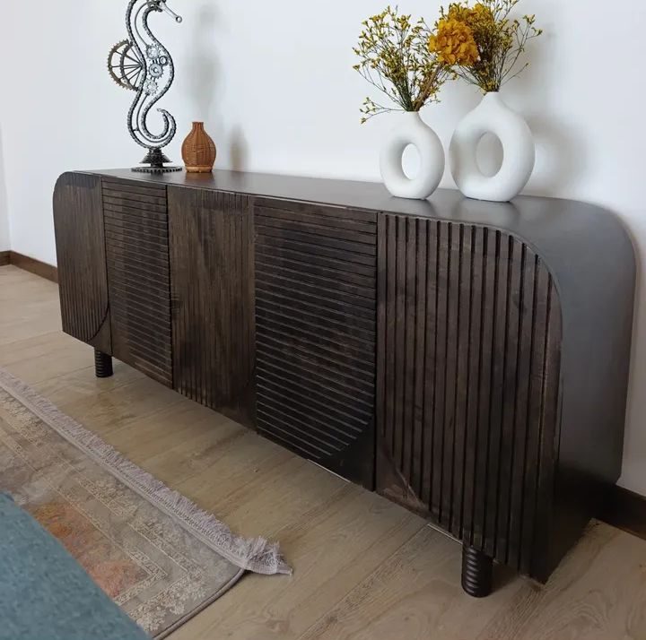 Make a statement of refined sophistication with the Pimisi Credenza, where sculptural form meets functional design. Defined by its graceful curves and striking vertical fluting, this piece brings architectural drama to any interior — a seamless blend of Art Deco inspiration and modern minimalism.