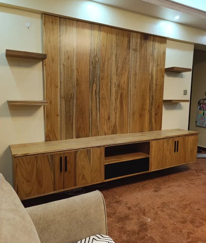 Function meets design with a thoughtfully crafted layout — dual side cabinets provide discreet storage for electronics and accessories, while open center shelves offer easy access to media components. Floating side shelves add an extra layer of display space for décor, books, or keepsakes, enhancing both practicality and style.