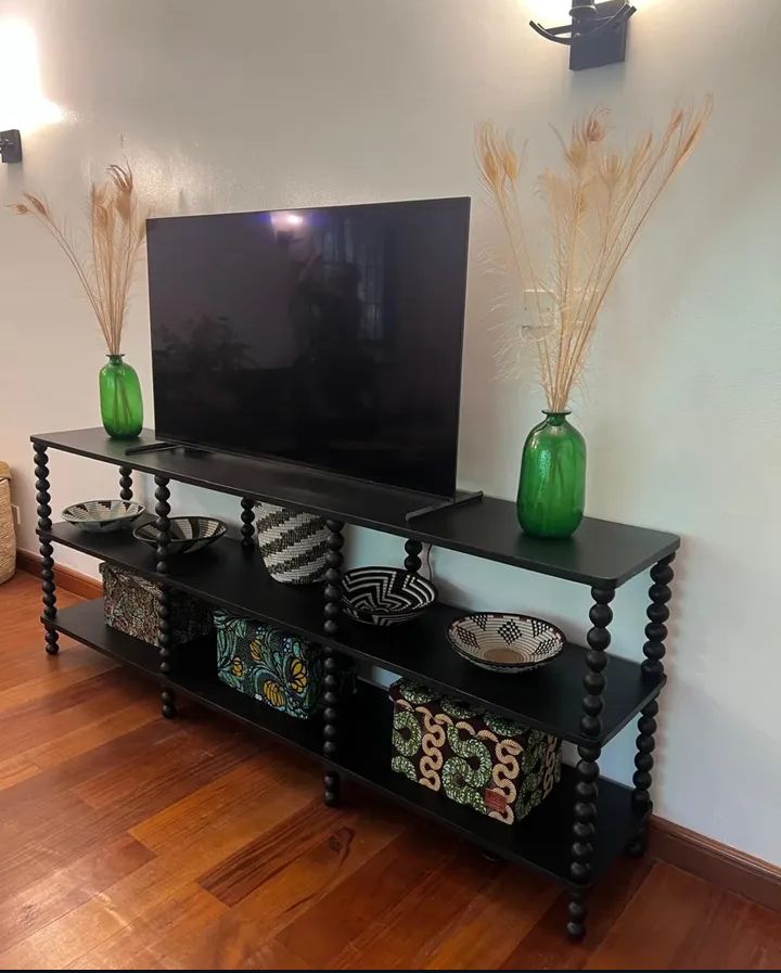 Crafted from solid Meru oak wood and finished in a deep matte black lacquer, the Venetia blends timeless craftsmanship with modern sophistication. Whether placed beneath a TV, along a hallway, or as a display console in your living room, it anchors the space with quiet confidence and refined charm.